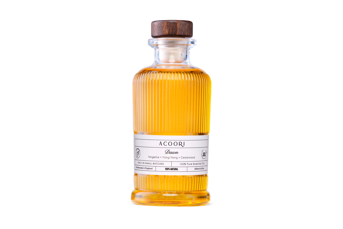 - This enchanting fusion of Tangerine, Ylang Ylang, and Himalayan Cedarwood creates a sensorial journey, unfolding in a symphony that transcends the ordinary. Sunlit Tangerine bursts forth, infusing the air with vibrant energy, harmonising with Ylang Ylang's floral embrace, and adding alluring sweetness. The composition is grounded by the warm, woody essence of pure Cedarwood, instilling tranquillity and sophistication.