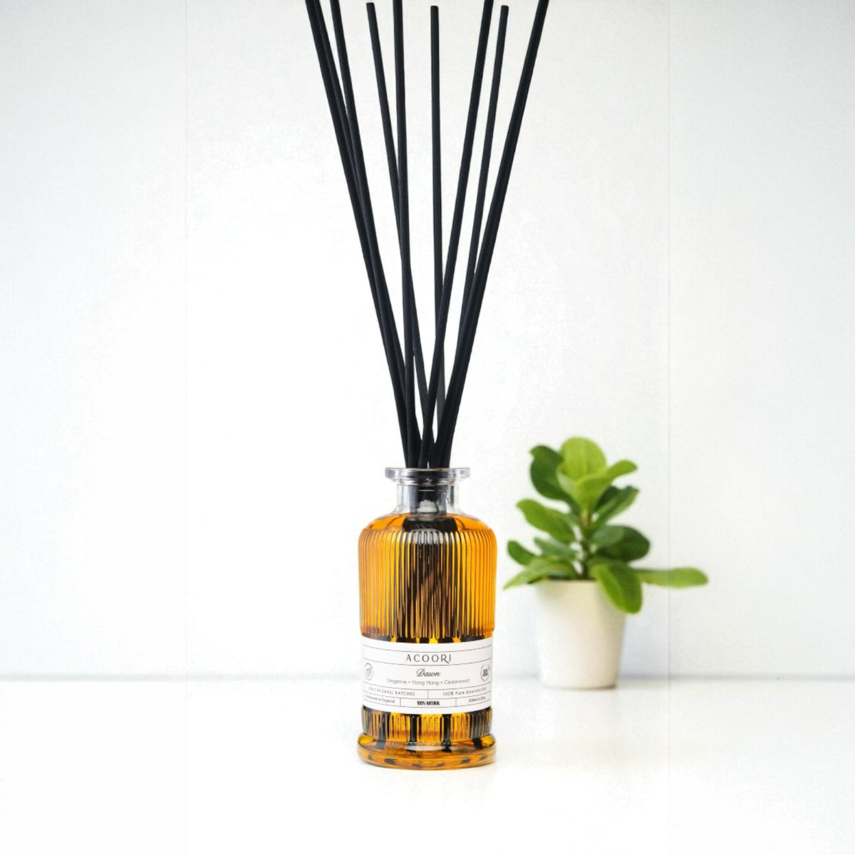 Each of our diffusers is crafted from a blend of pure essential oils and natural carrier oils, carefully chosen for their quality, purity, and ability to fill your space with long-lasting, natural scent.