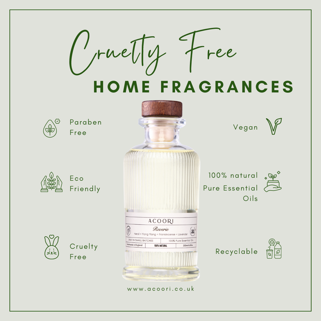 Yes. Every Acoori diffuser is crafted from 100% natural, plant-based ingredients. We blend only pure essential oils with natural carrier oils, free from alcohol, synthetic fragrance, or harmful chemicals, to create a clean, long-lasting scent experience.